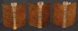 Complet de ses 2 volumes, in-12 plein veau du temps, dos lisse ornée de caissons et pièce de titre, tr. peintes, 322pp. et 401pp.; excellent état, complet de ses 2 tomes! Le motif sur les pages de titres représente un fleurons avec au centre un médaillon muet, sur le second un jeu de fleurons circulaire, tomaison entourée de filets horizontaux. Probable seconde édition non autorisée. très bel état, photos sur demande.