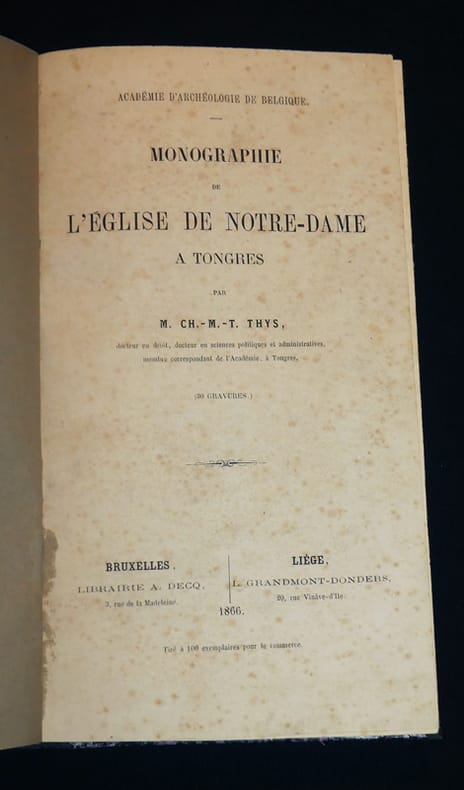 1 volume in-8° relié demi-toile. Recueil factice réunissant plusieurs travaux sur TONGRES. X, 235, 1 - 207 p., 30 gravures - 43 p. - 111 p. - 22 p. - 22 p. Rousseurs sinon très bon état.