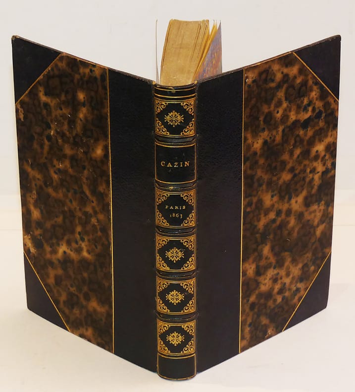 Cazinopolis, [Paris], 1877. 1 vol. in-18, veau blond glacé, dos à nerfs orné de fleurons dorés, pièce de titre en veau vert, encadrement d'un double filet doré sur les plats, double filet doré sur les coupes, roulette dorée intérieure, tranches dorées. Reliure de l'époque. Bel exemplaire. Ex-libris héraldique gravé au contreplat de Le Thierry d'Ennequin.[B09]