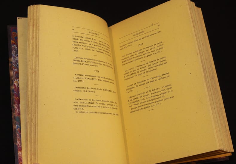 Réimpression à 300 exemplaires de cette bibliographie très complète des ouvrages édités par le libraire rémois Cazin, et de leurs contrefaçons. L'édition originale avait été imprimée en 1863 Cette bibliographie reste très utile et pratique, malgré les travaux de Jean-Paul Fontaine sur Cazin qui ont remis en question bien des éditions attribuées par erreur au célèbre imprimeur rémois.