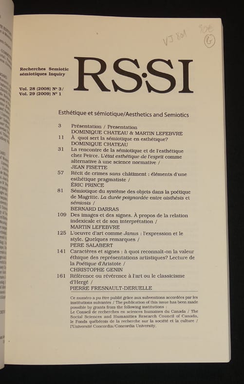 Association canadienne de sémiotique Revue 2008 In-8 (15,2 x 22,8 cm), dos carré collé, 211 pages, texte majoritairement en français sauf un article en anglais ; très bon état général. Livraison a domicile (La Poste) ou en Mondial Relay sur simple demande.