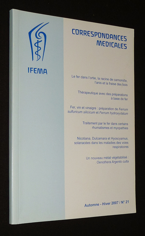Institut de Formation et d'Edition pour la Médecine anthroposophique (IFEMA) Revue 2007 In-8 (14,8 x 21 cm), revue dos carré collé, 93 pages ; très bon état général. Livraison a domicile (La Poste) ou en Mondial Relay sur simple demande.