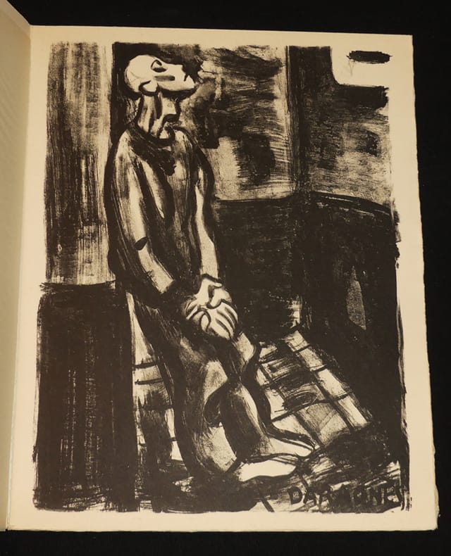 Edition tirée à 500 exemplaires sur pur chiffon filigrané Bélier Lana, un des 100 numérotés hors-commerce. Ouvrage réalisé "A la mémoire des imprimeurs parisiens fusillés, décédés dans les camps allemands ou disparus... de leurs ouvriers et de tous les imprimeurs inconnus qui ont donné leur vie pour la liberté". Textes de François Mauriac, Georges Duhamel, Paul Eluard, Jacques Maritain, Jean Cassou, Claude Aveline, Jean Paulhan, Vercors, Jean Schlumberger, Jean Ulmann et Michel Bernstein. (Ce dernier resta caché depuis 1942 dans un appartement parisien où il créa un atelier clandestin de faux papiers, cachets, timbres... Il rédigea également à lusage des résistants un Manuel du faussaire peu avant la libération, à la demande de Défense de la France. (Le Maitron, https://maitron.fr/spip.php?article16454, notice BERNSTEIN Michel par Michel Cordillot).