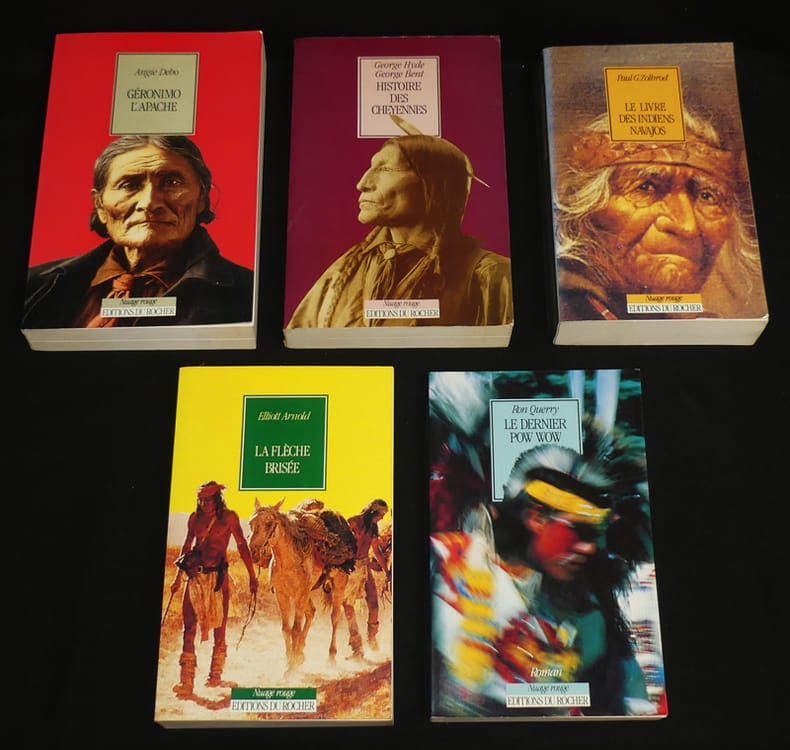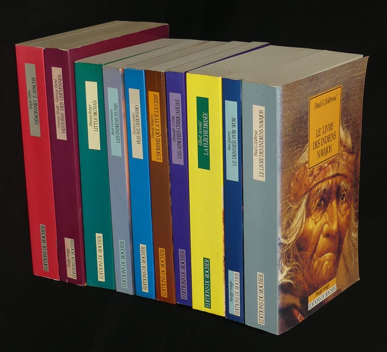 Editions du Rocher Nuage rouge Broché 10 volumes in-8 brochés, couvertures illustrées au format 24 X 16 cm. ou 23 14 cm., ce lot contient les titres suivants : Géronimo l'Apache - Pleure Géronimo - Les Indiens Zunis - Little Bigman, Mémoires d'un visage pâle - Histoire des cheyennes- La flèche brisée - l'homme qui a tué le cerf - Les apaches Chiricahuas - Le dernier Pow Wow - Le livre des indiens Navajos ; bel ensemble en bel état. Livraison a domicile (La Poste) ou en Mondial Relay sur simple demande.