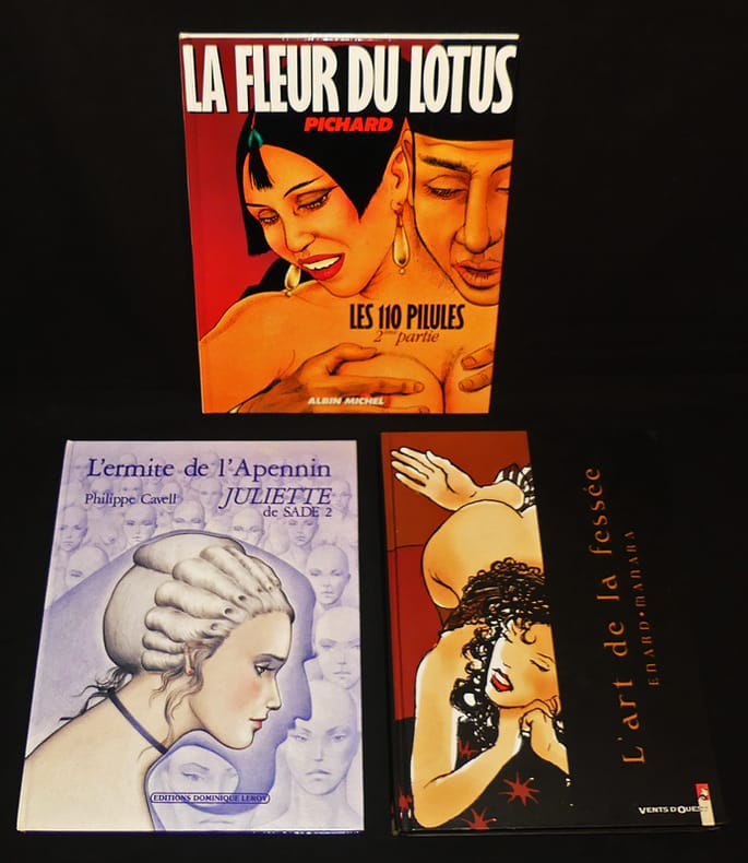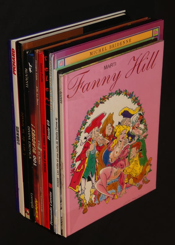Albin Michel, Glénat, Leroy Dominique, P&T production, Vent d'ouest, Loempliart, Bédé adult' Album cartonné 11 albums acartonnés de bandes dessinées érotiques au format in-4, ce lot contient les titres suivants : Fièvre de printemps - route 69 - Mona Street 2 Mona à Venise - l'Ecole des biches - 100 blagues ! très coquines - Fanny Hill - Les mille et une nuits de Stella - Divina Erotica - L'art de la fessée - les 110 pilules 2ème partie - Juliette 2 l'ermite de l'Apennin ; ensemble en bel état. Livraison a domicile (La Poste) ou en Mondial Relay sur simple demande.