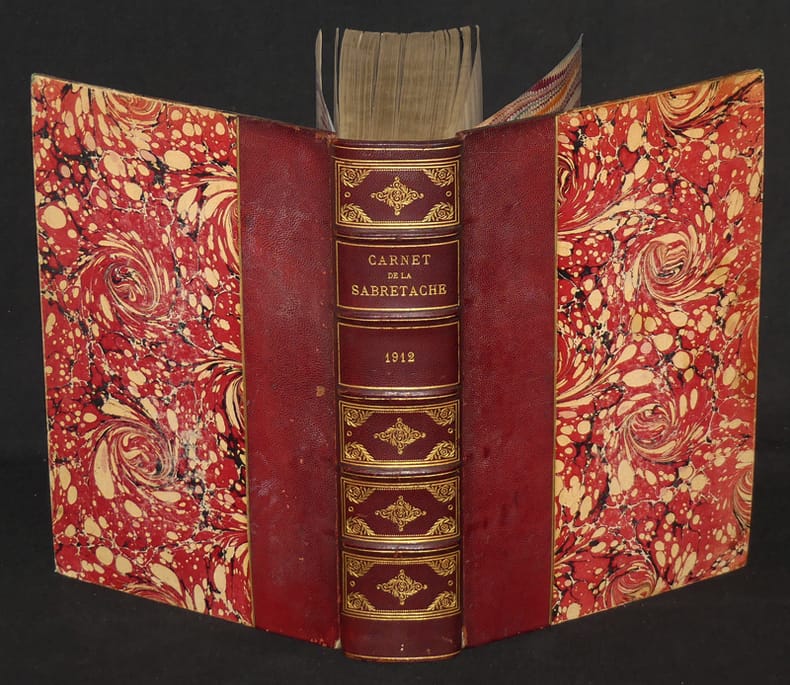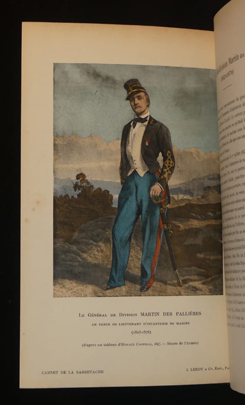 J. Leroy éditeur Revue relié 1912 Un fort volume in-8 relié (16.5 * 25.5 cm) demi chagrin violine à caissons ornés, couverture conservée, du numéro de janvier au numéro de décembre, 816 pages. Bien complet des planches hors texte collationnées d'après l'avis au relieur (malgré l'inversion de deux cahiers). Le numéro 1 de cette revue fut imprimé en en janvier 1893, pour la plupart les articles traitent d'histoire militaire entre 1780 et 1870, on y trouve des récits de faits militaires, des biographies d'hommes de guerre, et entre autre des études sur les uniformes, les hors-texte couleurs sont réputés pour leur fidélité et leur qualité artistique. Le grand spécialiste de la peinture militaire qu'était Edouard Detaille fut le premier président de cette Société. 1912 est l'année de sa mort. Un vibrant hommage lui ai rendu dans le dernier numéro de cette année. ; mors frotté, intérieur frais, bon exemplaire. Livraison a domicile (La Poste) ou en Mondial Relay sur simple demande.