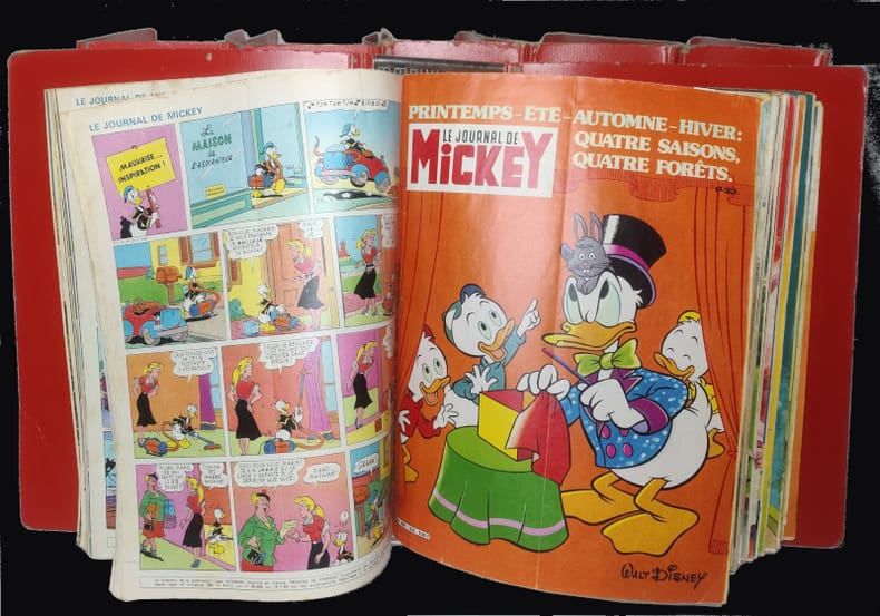 Unique Heritage Média Revue 1977 "Ce lot regroupe 138 numéros de la revue ""Le journal de Mickey"", publiés entre 1977 et 1982. C'est le premier magazine en France à s'être appuyé sur les personnages Disney, il est aussi le plus ancien magazine français destiné à la jeunesse encore en activité. Détail des numéros : n°1279 ; n°1280 ; n°1284 à n°1288 ; 1290 à 1330 (couverture du n°1307 abîmée) ; n°1446 à n°1478 ; n°1480 à 1493 ; n°1527 à n°1540 ; n°1546 ; n°1548 ; n°1551 à 1576 ; Bon état général, certaines pages peuvent cependant être pliées ou abimées, et certaines couvertures en partie détachées, le tout est triée par ordre de numéros dans 6 classeurs. Livraison a domicile (La Poste) ou en Mondial Relay sur simple demande."