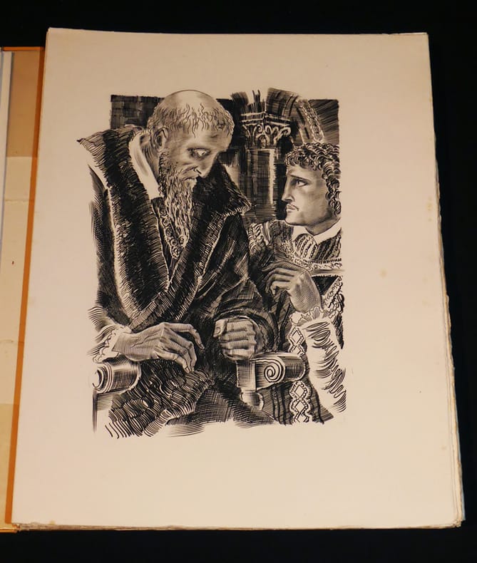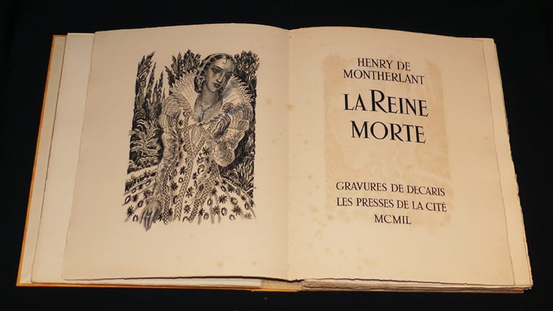 Les Presses de la cité album cartonné avec emboîtage 1949 Grand In-4 (26 x 33cm), en feuilles sous couverture rempliée et illustrée, étui orange et emboîtage mauve, 177 pages, 21 burins de Decaris tirés sur cuivre, n°63 des 200 exemplaires communs ; intérieur frais, mouillures et frottements sur l'étui et dos insolé, frottements sur l'emboîtage, bon état général. Livraison a domicile (La Poste) ou en Mondial Relay sur simple demande.
