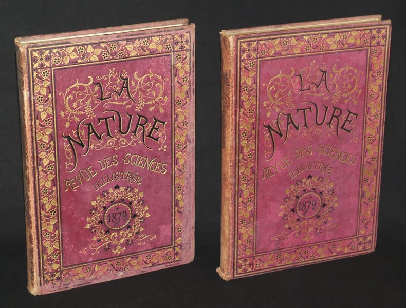 Paris, G. Masson, éditeur Revue 1879 Deux volumes in-4 (20,3 x 30 cm), reliés cartonnage décoré de l'éditeur, tranches dorées, 426 et 443 pages, illustrations en noir ; 1er et 2e semestres de la septième année 1879 de la revue La Nature ; dos et plats frottés (Voir photographies), intérieur frais, état général correct. Livraison a domicile (La Poste) ou en Mondial Relay sur simple demande.