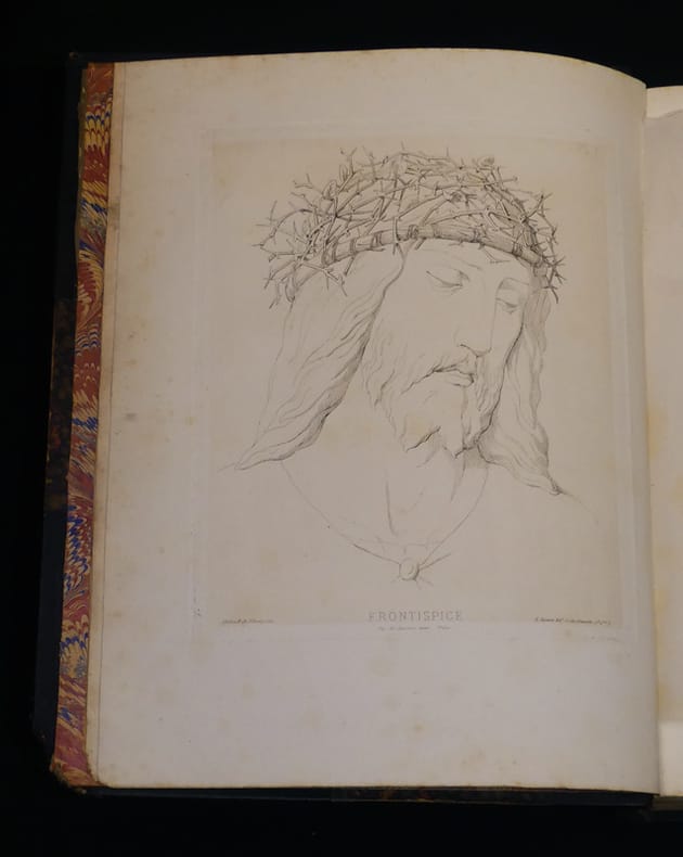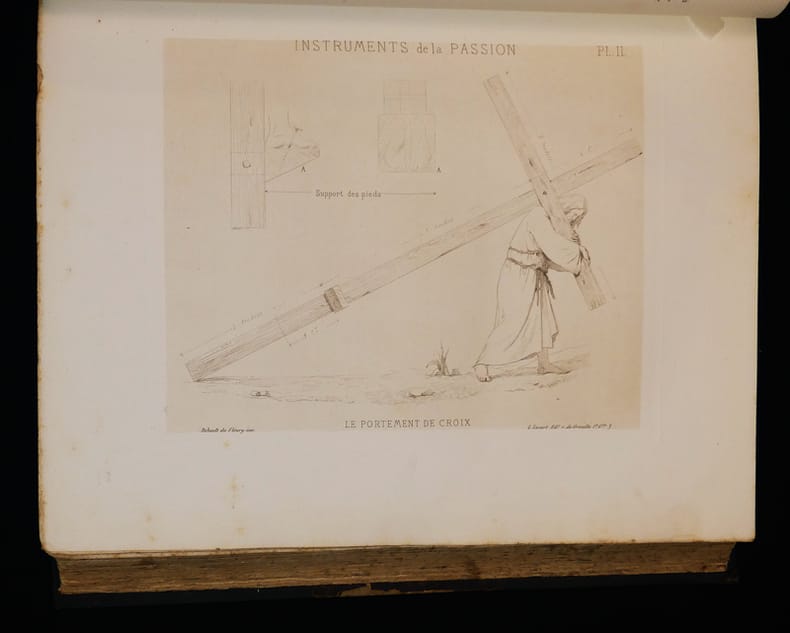 Librairie liturgique-catholique, Paris, L. Lesort, rue de Grenelle Saint-Germain, 3 Relié 1870 In-4 (27 x 33 cm), reliure demi-chagrin, dos à 5 nerfs, 414 pages, planches hors texte ; quelques traces sur le cuir, coupes usées, papier reliure frotté au premier plat, importants manques de papier reliure au quatrième plat, manque de cartonnage et de cuir dans le coin inférieur du premier plat, des rousseurs à l'intérieur, par ailleurs bien conservé, assez bon état général. Livraison a domicile (La Poste) ou en Mondial Relay sur simple demande.