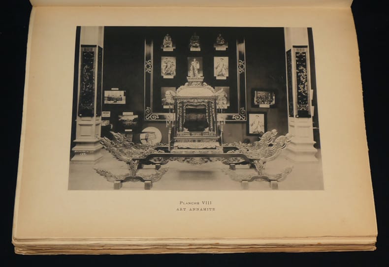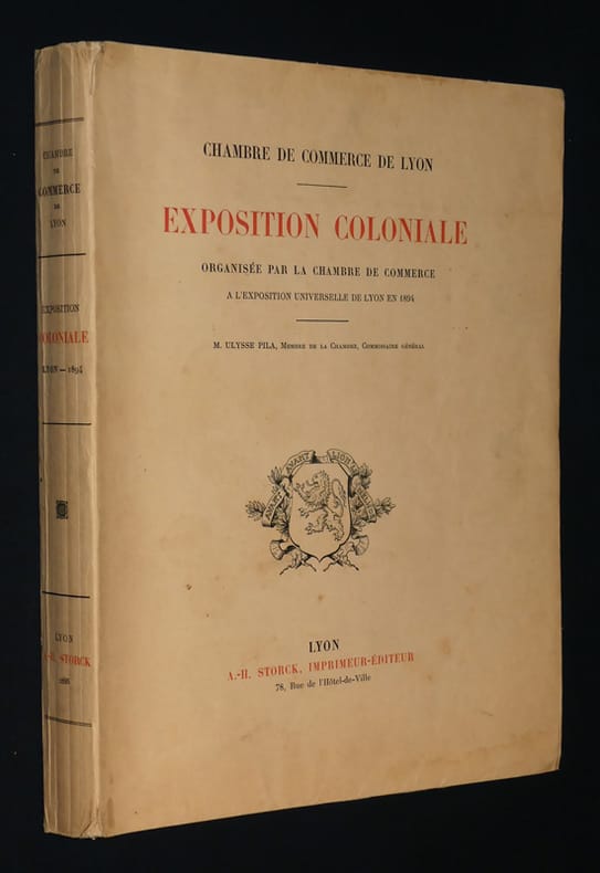 Edition originale ; envoi de la Chambre de Commerce de lyon à Mr Henri Tribolet au crayon rouge. Etaient représentés : l'Algérie, la Tunisie, l'Annam, le Tonkin, la Cochinchine, le Cambodge, le Soudan, le Dahomey, le Congo français, Oback, Madagascar, la Nouvelle Calédonie, la Guadeloupe, etc. Bon exemplaire dans l'ensemble avec quelques rares petites rousseurs.