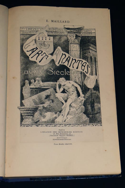 Peintres, Dessinateurs, Aquarellistes, Sculpteurs, Architectes, Graveurs, Lithographes, Sociétés et publications, artistiques, scientifiques et littéraires, Archéologues savants, Littérateurs, Poètes, Musiciens, Orateurs. Titre-frontispice ; tableau replié des Architectes Nantais. Couverture salie.