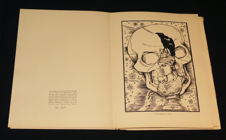 Editions A. Sedrowski Planches sous chemise 1936 In-4 (24,5 x 32,7 cm), 1 des 260 exemplaires numérotés sur velin teinté, ensemble bien complet des 12 planches et du frontispice illustrés par Robert West, et de la présentation de Yves-Gérard Le Dantec ; frottements et petites déchirures sur les bords, coiffes et angles de la chemise, par ailleurs intérieur en bel état. Livraison a domicile (La Poste) ou en Mondial Relay sur simple demande.