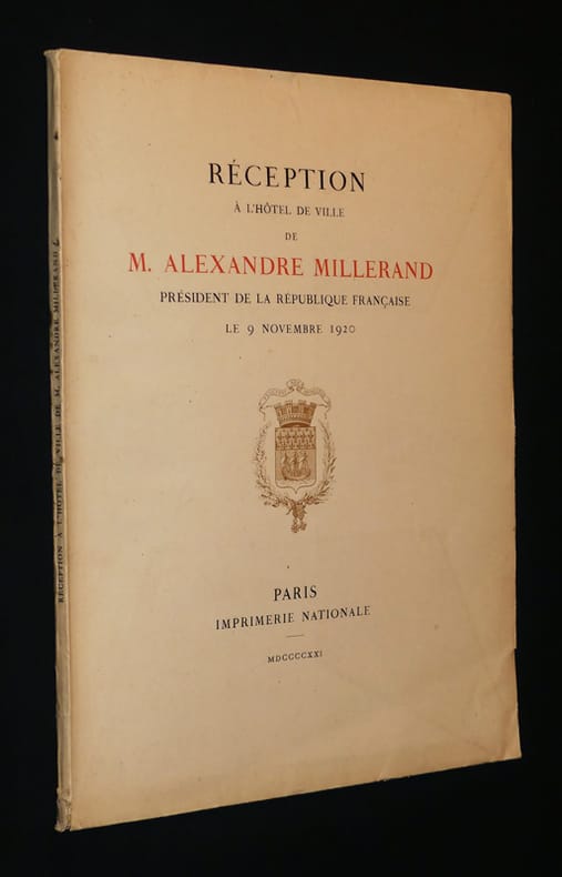 Imprimerie Nationale Broché 1921 In-4 (25,5 x 33,5 cm), broché, couverture rempliée, 20 pages, avec un portrait de Millerand, un fac-similé du procès verbal de la réception ; petite déchirure sans manque au dos en queue, traces rouges au quatrième plat, assez bon état général. Livraison a domicile (La Poste) ou en Mondial Relay sur simple demande.