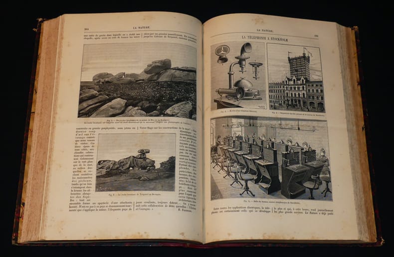 Revue de vulgarisation scientifique fondée en 1873 par Gaston Tissandier (1843-1899), écrivain et aérostier. Dos brunis. Intérieur frais malgré de rares rousseurs. Année 1889 complète. - Frais de port : -France 8,45 € -U.E. 13 € -Monde (z B : 23 €) (z C : 43 €)
