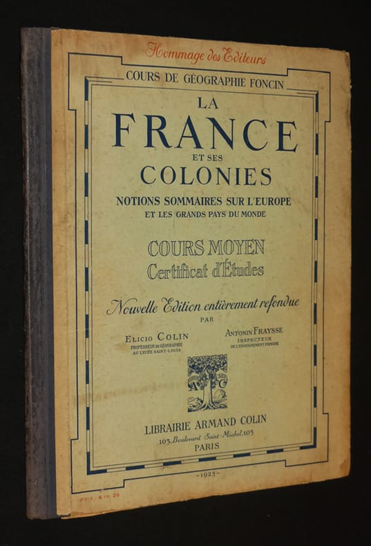 Armand Colin Reliure d'éditeur 1925 In-4, (26.5x21.5 cm), reliure d'éditeur, dos toilé bleu, 80 pages, illustré en noir et blanc et en couleurs, cartes, publicité pour le manuel de géographie du cours supérieur insérée avec l'ouvrage ; traces et petits manques sur les plats, assez bon état. Livraison a domicile (La Poste) ou en Mondial Relay sur simple demande.