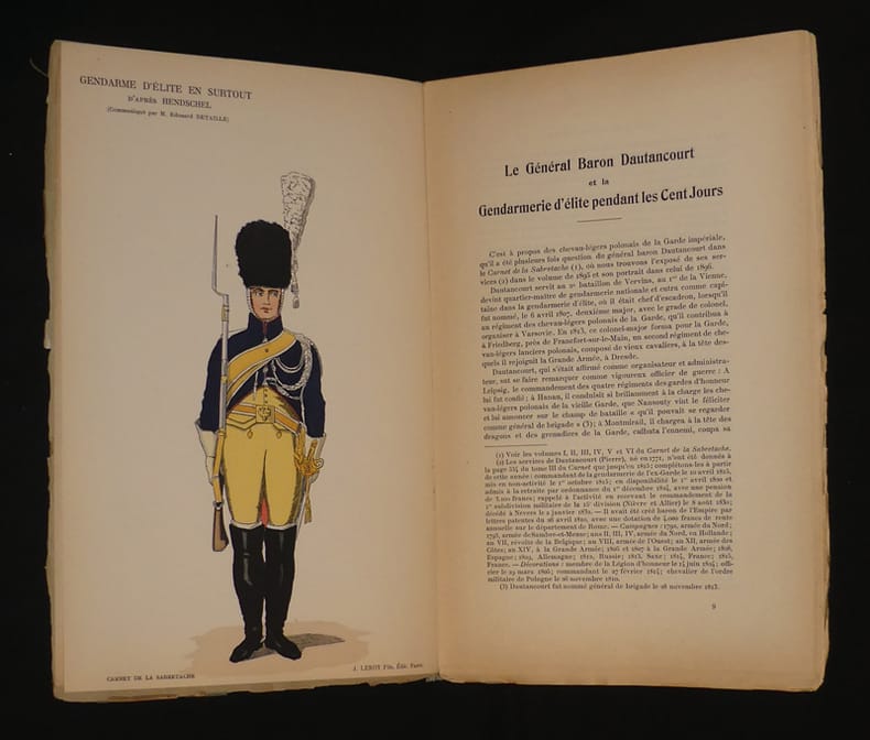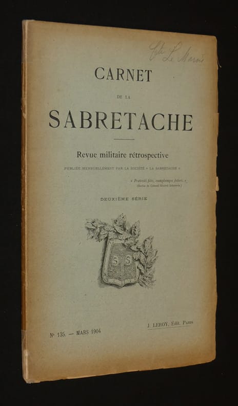 La Sabretache Revue 1904 In-8 (16,5 x 25,5 cm), broché, paginé de 130 à 192, en partie non coupé, trois planches hors texte dont une en couleurs ; dos et bord des plats brunis, réparation au ruban adhésif aux coiffes, pliures et fendillements sur les bords des plats, par ailleurs intérieur bien conservé, assez bon état général. Livraison a domicile (La Poste) ou en Mondial Relay sur simple demande.