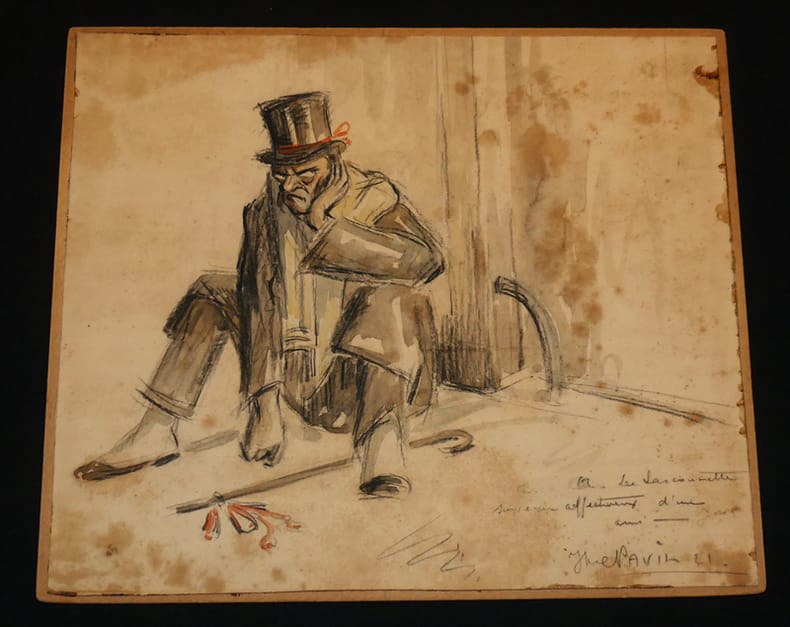 Dessin original 1921 Dessin original (24,3 x 21,2 cm), signé Navil (?), envoi à Jean de Lascoumettes ; quelques traces et rousseurs, état moyen. Livraison a domicile (La Poste) ou en Mondial Relay sur simple demande.