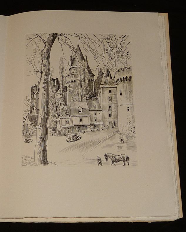 Les Halles aux Cuirs réunies Feuilles sous couverture et emboîtage 1952 In-folio (26,8 x 34,8 cm), feuilles sous couverture et emboîtage cartonné, non paginé, exemplaire sur vélin, seul tirage, gravures en noir de Louis Joseph Soulas ; couverture inégalement brunie, rousseurs sur l'étui, par ailleurs intérieur frais, assez bon état général. Livraison a domicile (La Poste) ou en Mondial Relay sur simple demande.
