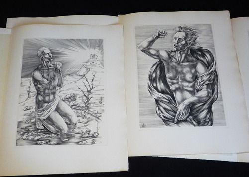La Belle Page Boite 1962 In-folio (35 x 42,8 cm), boîte-étui de l'éditeur contenant onze burins originaux, tirage limité à 201 exemplaires, ici 1 de 190 exemplaires sur grand vélin d'Arches, manque l'achevé d'imprimer, la justification de tirage ainsi que la page de titre mentionnant l'éditeur ; très bel état. Livraison a domicile (La Poste) ou en Mondial Relay sur simple demande.