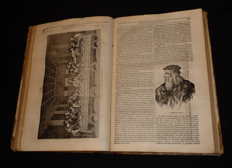 Magasin pittoresque Revue 1834 "In-4 (20 x 29,3 cm), reliure demi-peau, 2e année de la revue ""Le Magasin pittoresque"", 412 pages ; coupes usées, petits manques de papier reliure sur les bords des plats, cartonnage corné dans le coin inférieur du quatrième plat, état moyen. Livraison a domicile (La Poste) ou en Mondial Relay sur simple demande."