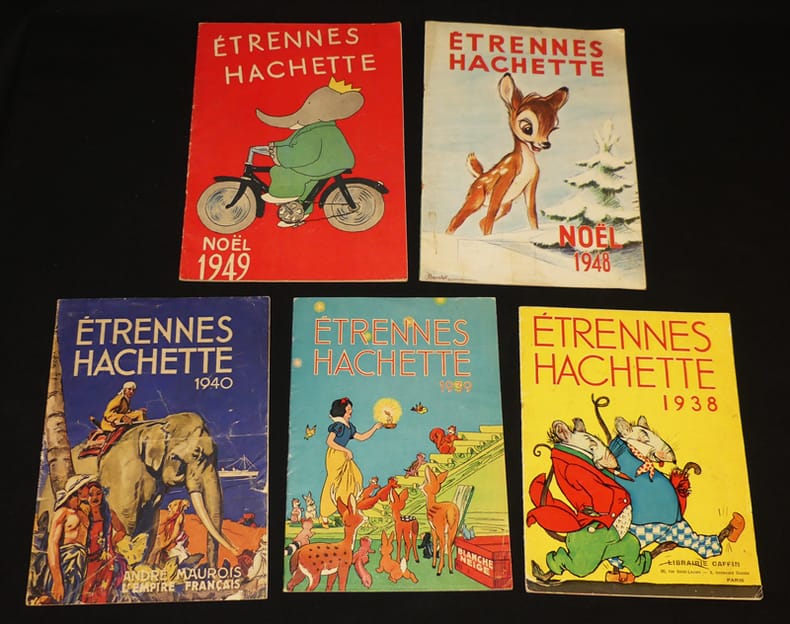 Hachette Fascicule 1938 Cinq fascicules in-8 (21 x 16 cm. ou 24 x 17 cm.), couvertures illustrées en couleurs, ce lot contient les catalogues 1938-1939-1940-1948-1949, largement illustrés des couvertures des livres d'enfants de ces années là ; Livraison a domicile (La Poste) ou en Mondial Relay sur simple demande.