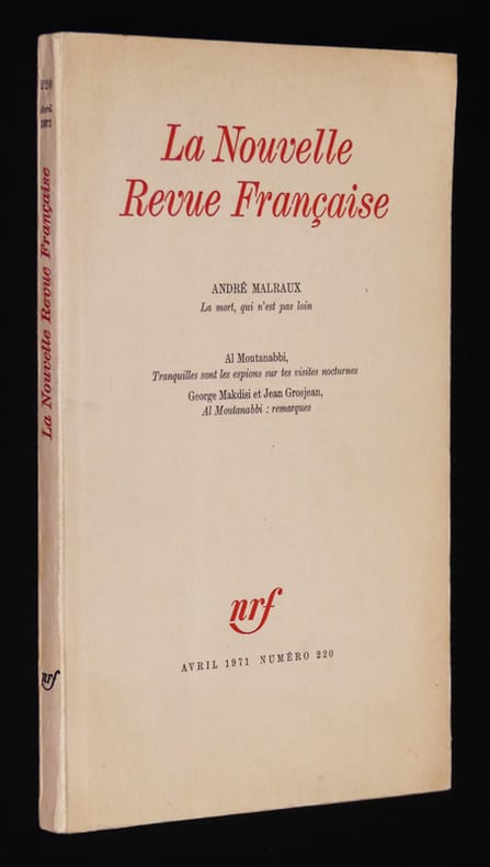 Gallimard, NRF Revue 1971 In-8 (14 x 22,5 cm), revue brochée, paginée de 2 à 126 ; mors un peu frottés, rares traces au premier plat, bel état par ailleurs. Livraison a domicile (La Poste) ou en Mondial Relay sur simple demande.