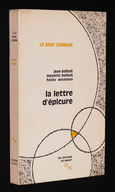 Paris, les éditions de Minuit, coll. Le sens commun, 1971. In-8 broché avec couv. à rabats, 312 p. Certains passages comportent des pages en grec avec traduction française en regard (la lettre à Hérodote). Bibliographie et glossaire. La couverture est un peu salie, mais l'état intérieur est excellent.