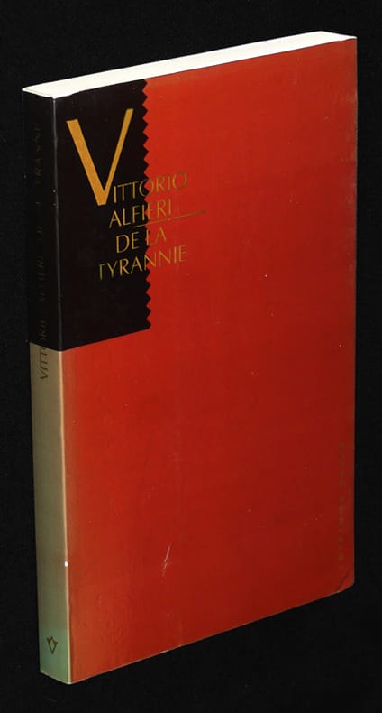 :: Collection des meilleurs auteurs anciens et modernes. :: Cartonnage de l'époque, toile, avec un monogramme sur le plat supérieur et cette mention : Bibliothèque de l'usine (no 65 au dos). Bon état. Extrait du Chapitre 2 : Ce que c'est que la tyrannie : On doit donner indistinctement le nom de tyrannie à toute espèce de gouvernement dans lequel celui qui est chargé de l'exécution des lois peut les faire, les détruire, les violer, les interpréter, les empêcher, les suspendre, ou même seulement les éluder avec assurance d'impunité. Que ce violateur des lois soit héréditaire ou électif, usurpateur ou légitime, bon ou méchant, un ou plusieurs; quiconque, enfin, a une force effective capable de lui donner ce pouvoir est tyran; toute société qui l'admet est sous la tyrannie, tout peuple qui le souffre est esclave.