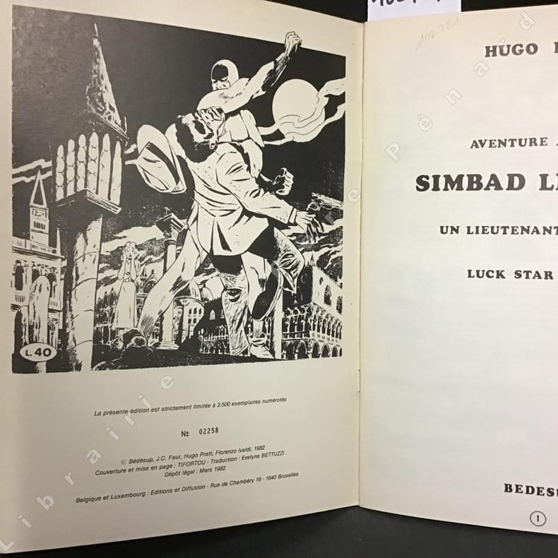1982 Bédésup éditeur - 1982 - In-4 broché illustré en N&B - 46 planches illustrées en N&B - Édition originale numérotée 02258/2500 - Contient : Aventure à Venise, Simbad le marin, Un lieutenant Allemand et Luck Star O'Hara.