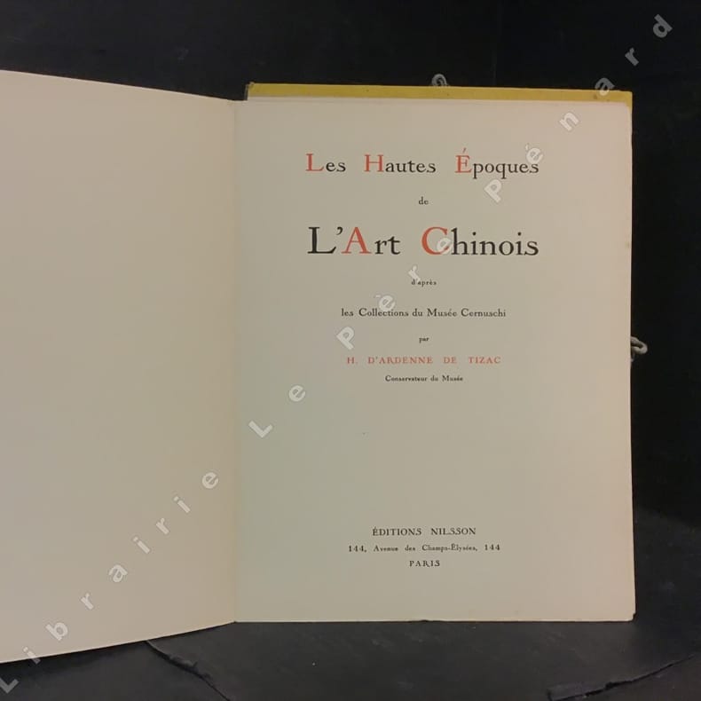 Paris, éditions Nilsson, [c. 1920-1930], in-4, [6] pp. 24 pl, Chemise éditeur jaune, liens, Édition originale de cet album de planches luxueusement reproduites, réunissant des pièces datant du IIIe millénaire avant J.C. au Xe siècle après, provenant du musée Cernuschi. Chemise réparée à l'adhésif, petites taches. Couverture rigide