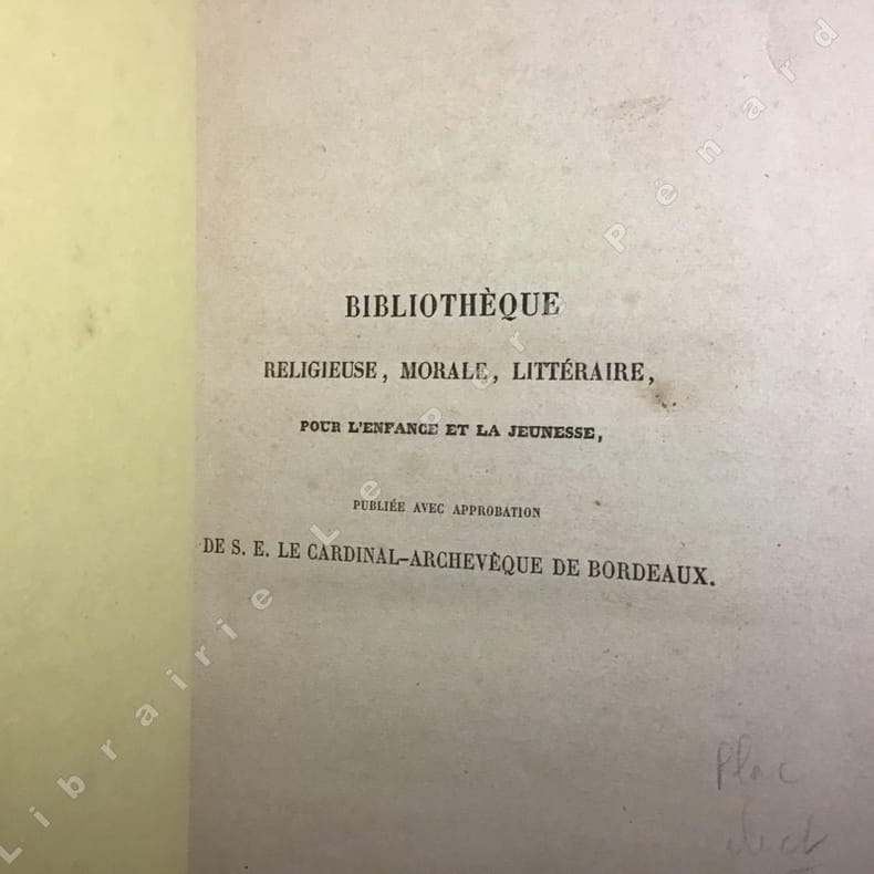 sd A Limoges, Chez Eugène Ardant et C. Thibaut - Série "Bibliothèque religieuse, morale, littéraire, pour l'enfance et la jeunesse" - Ouvrage rare, sans date - Nouvelle édition, soigneusement revue - Publié avec approbation de S. E. Le Cardinal-Archevêque de Bordeaux - In-quarto (17x27cm environ), pleine percaline violette, décor doré sur les plats - 200 pages - Avec une gravure en frontispice, sous serpente