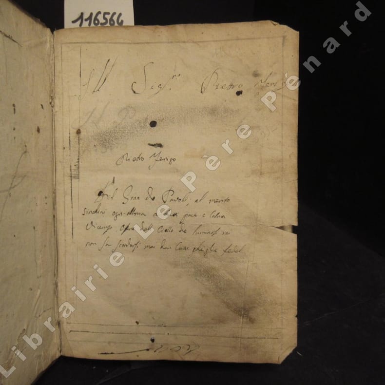 Bon état général - Annotations anciennes sur deuxième plat et première page de garde - Petite déchirure dans la marge extérieure de la page de titre ainsi que quelques ratures sombres sur cette page de titre - Quelques accrocs et marques de frottements à la reliure avec petit manque de parchemin dans le coin inférieur droit du premier plat - Petit manque de parchemin également au dos et coins érodés - Quelques mouillures claires dans les marges