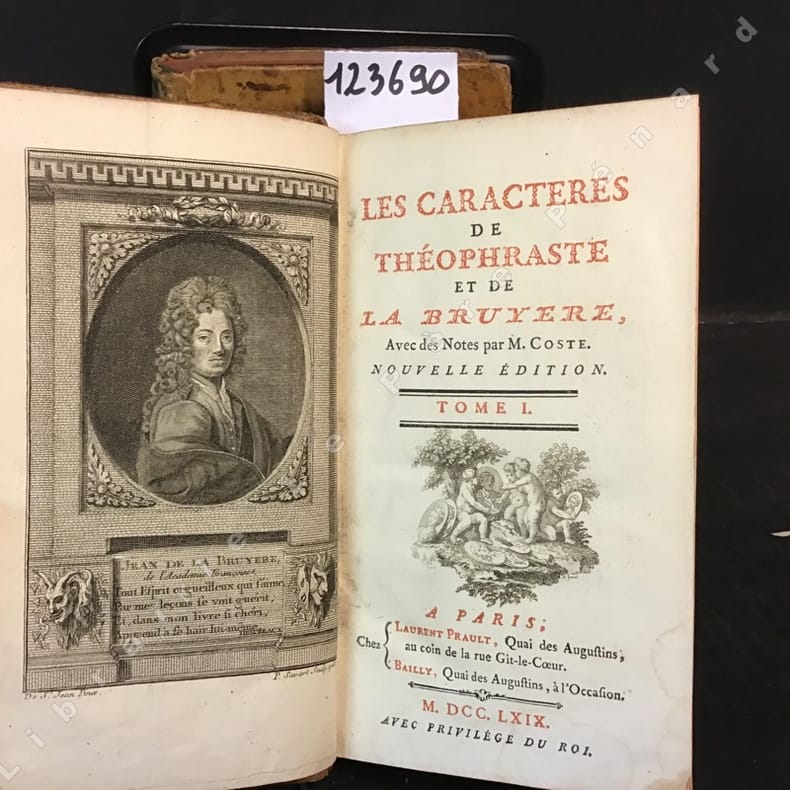 1769 A Paris, Chez Laurent Prault, Chez Bailly. Avec privilège du Roi - M. DCC. LXIX. (1769) - Deux volumes in-12; reliure plein veau marbré de l'époque; dos à 5 nerfs; caissons orné de fleurons en doré et pièce de titre sur fond brun au dos; tranches rouges, roulette doré sur les bords; signet vert; frontispice - 479 + 563 pages - Ouvrage orné de bandeaux, lettrines et culs-de-lampe
