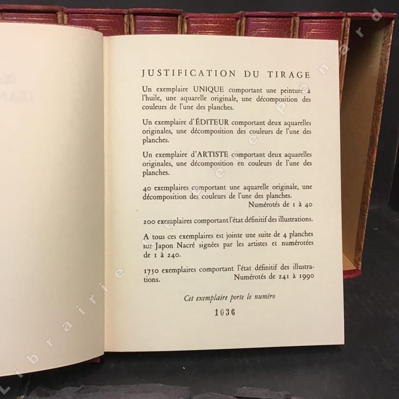 Bernard Grasset / Pierre de Tartas 1974 In-8 Couverture rigide Editions Bernard Grasset, Paris et Pierre de Tartas, Bièvres - 1974 - Complet en dix volumes in-8; dos à 4 nerfs sautés; titre et filets en dorés au dos; filets dorés sur les plats; signet; emboîtage marbré aux coiffes bordées - Exemplaire numéroté 1036 - 252 + 257 + 281 + 332 + 272 + 216 + 215 + 301 + 236