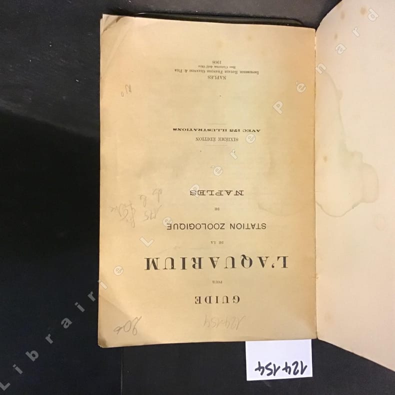 Naples, R. Stabilimento Tipografico Francesco Giannini & Figli, 1926. In-8. Broché. Couverture illustrée. 132 pages. 168 illustrations en noir in et hors texte. Mention de 8ème édition. Edition française. Index. Présentation illustrée de tous les poissons, crustacés et coraux de la station. Très bon état.