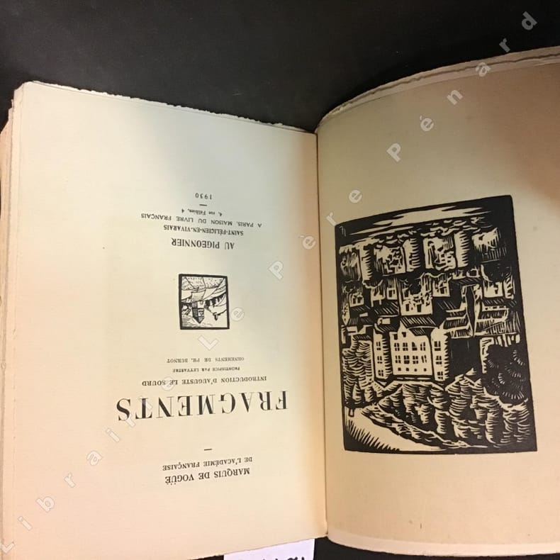 1930 Au Pigeonnier, Saint-Félicien-En-Vivarais; A Paris, Maison du Livre Français - Vingt-et-unième plaquette de la collection du "Pigeonnier", établie sous la direction de Charles Forot - 1930 - In-8, broché, frontispice - 32 pages + Table - Bandeaux gravés en N&B dans l'ouvrage - Ouvrage numéroté, N° 194, l'un des 300 exemplaires sur vergé Montgolfier d'Annonay - Feuillets non-coupés à partir de la page 17