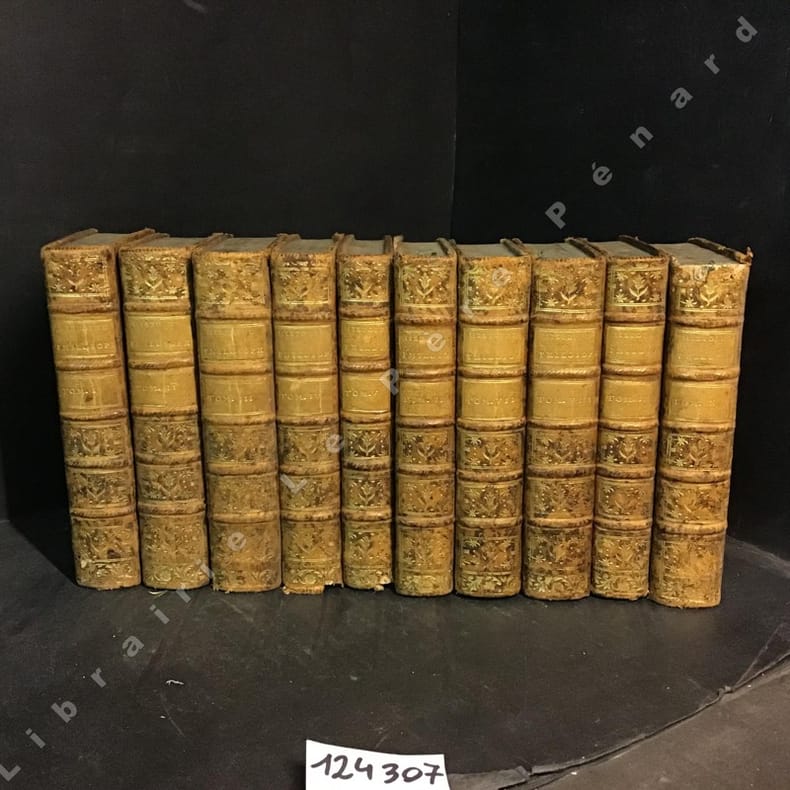 Bon état général malgré de menus frottements sur les dos, les tranches et les coins des 10 volumes - Quelques trous de vers sans galerie au dos des volumes - Accrocs avec légers manque de matière sur les plats du tome III, IV et VI - Coiffe de queue du tome IV et V FROTTÉ AVEC MANQUE DE MATIÈRE - Tranche de tête du quatrième plat du tome VI frottée avec manque de matière - Travaux de vers sur le quatrième plat du tome VII, sur le premier plat du tome IX et sur le quatrième plat du tome X - Intérieur frais Bon