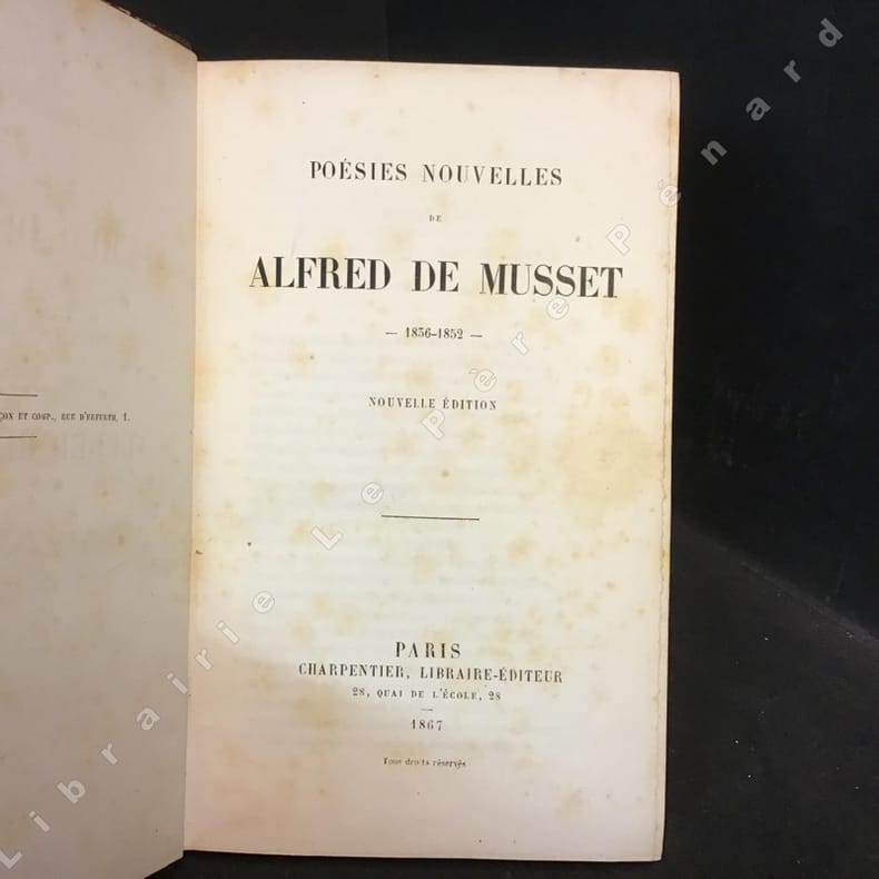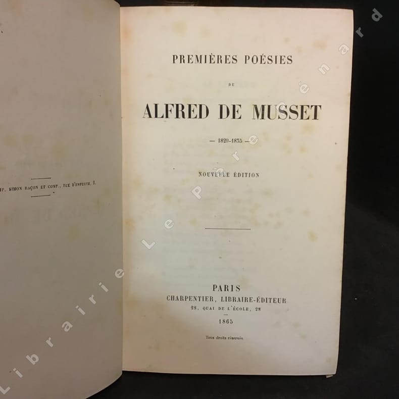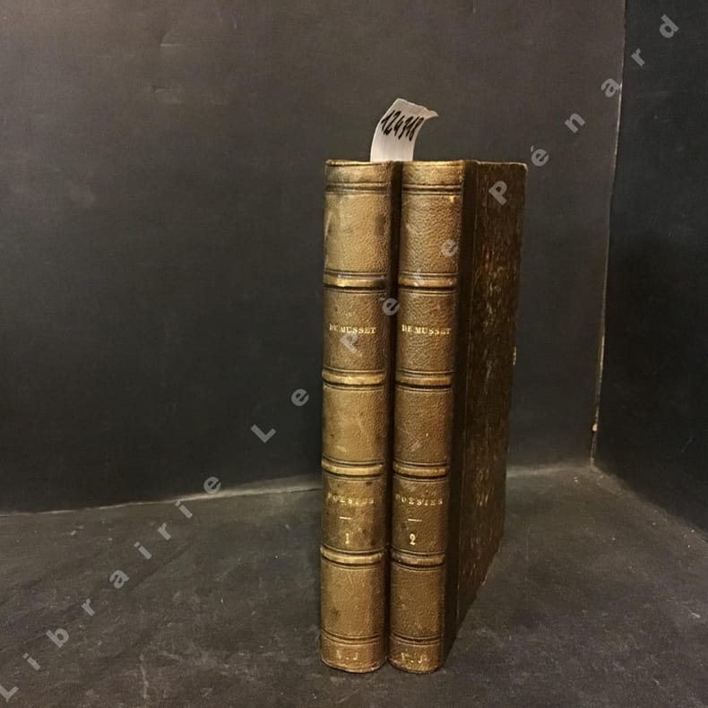 Bon état général - Coins émoussés - Dos ternis par le temps - Coin inférieur du quatrième plats des "Premières poésies" déchiré avec manque de matière - Légères rousseurs dans les deux volumes Bon