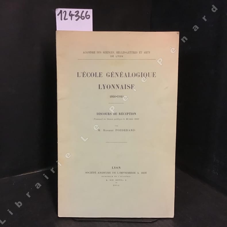 1941 Academe des Sciences, Belles-lettres et Arts de Lyon/ Société anonyme de l'imprimerie A. Rey, imprimeur de l'Académie - 1941 - In-4, broché - 64 pages
