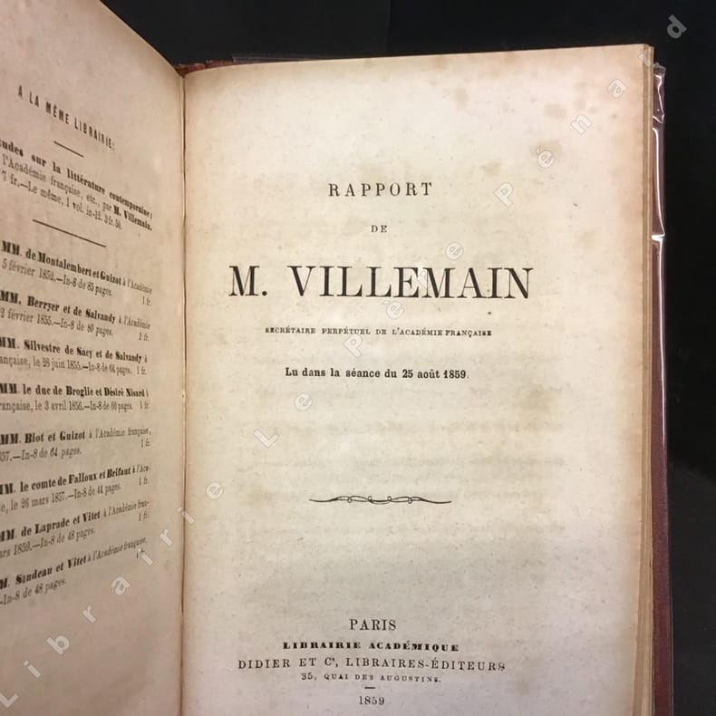 sd A. Pigoreau, Paris / Didier et Cie, Paris - sd/ 1859 - In-8, reliure pleine percaline rouge de prix "Instition Berchoud, Asnière" en doré, titre et auteur en doré sur le dos - 48 pages - Un portrait de M. Guizot en glymmatographie sur acier sur la page de garde