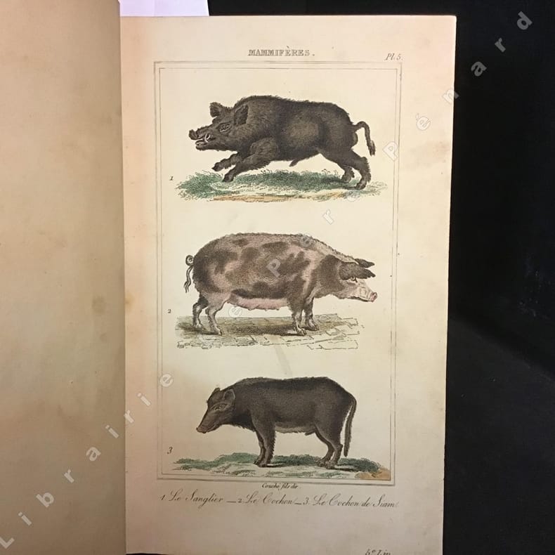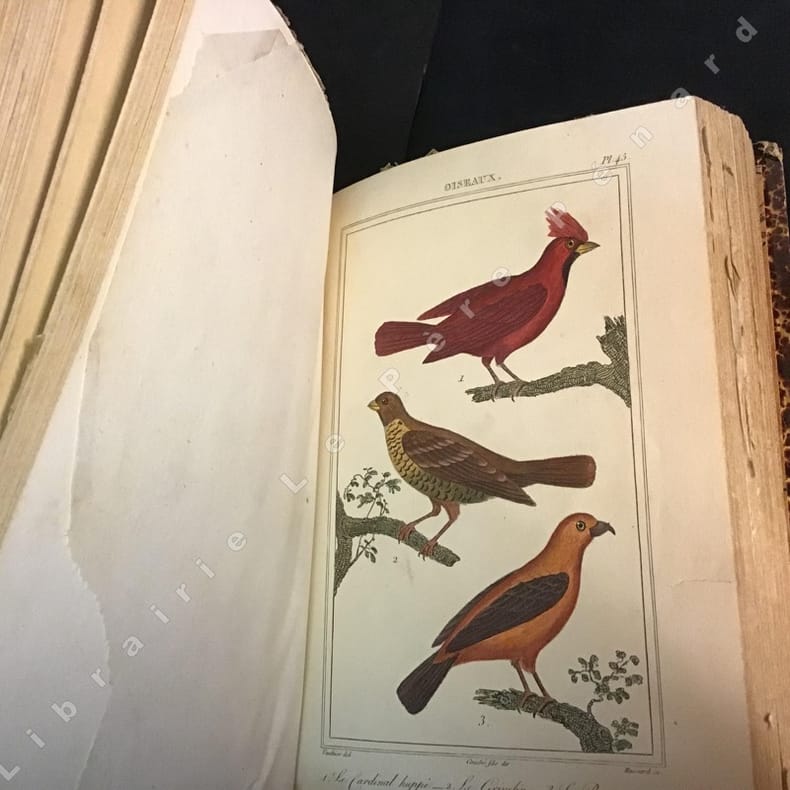 sd Editions non-renseignées - sans date - In-8, reliure demi-cuir, dos à 4 nerfs avec titre en dorée et filets estampés à froid - Ouvrage réunissant plus de 60 planches "Mammifères" et plus de 100 planches "Oiseaux" accompagnés d'une planche sur les "animaux spermatiques", d'une planche sur la lentille convergente et une carte dépliante (voir photos) Liste des planches "Mammifères" : 1 à 67 dont 18bis, 12bis, 25bis, 32bis et 45bis. Les planches 15, 31, 33, 36, 68 sont sans numéro et sur un papier moins terne. Les planches 39, 42, 44, 48, 54, 61 sont manquantes. Liste des planches "Oiseaux" : 1 à 109 dont 3bis, 12bis, 12ter, 17bis, 30bis, 31bis, 33bis, 81bis. Les planches 25 et 44 sont sans numéro et sur un papier moins terne. La planche 71 est manquante.