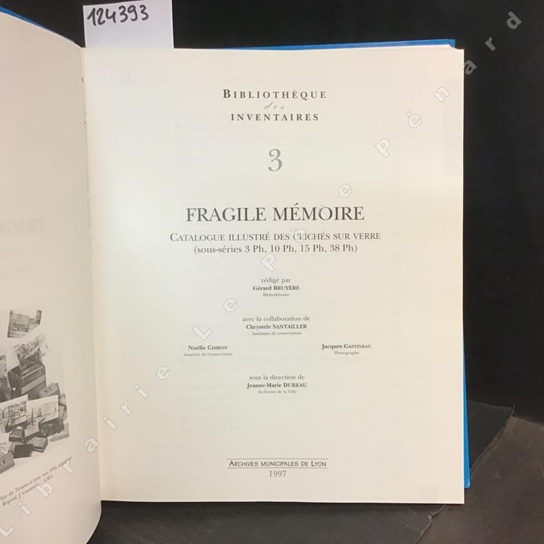 1997 Archives Municipales de Lyon, collection "Bibliothèque des inventaires" N° 3 - 1997. - In-4, relié, cartonnage illustré de l'éditeur - 327 pages - Nombreuses reproductions photographiques en N&B in texte