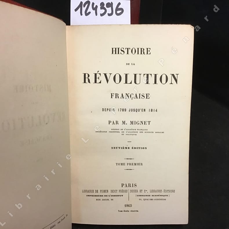 Paris, éd. Librairie Firmin Didot Frères, 1861, huitième édition, 2 vol. in-12, plein chagrin vert foncé, plats papier marbré vert et noir, auteur, titre, tomaison et encadrements dorés sur dos à 4 nerfs, reliure de l'époque, 391 - (3 bl.) - 348 - (2 bl.) pp., tables, Très belle édition de la Révolution française de 1789 jusqu'à la chute de l'empereur Napoléon Ier. Bien complet des deux volumes. Pas courant Très bon état de la reliure et du papier; quelques rares rousseurs éparses