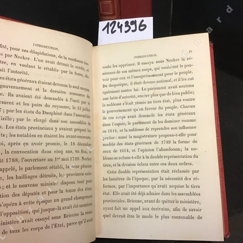FIRMIN DIDOT FRERES. 1845. In-8. Relié demi-cuir. Bon état, Coins frottés, Dos frotté, Quelques rousseurs. Frontispice en noir et blanc sous serpente - contreplats jaspés- filet, tomaisons, titre et auteur dorés au dos.. . . . Classification Dewey : 944.04-Révolution de 1789