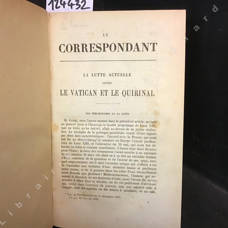1889 Le Correspondant - 1928 - Grand In-8, relié, demi-basane noire - Pagination discontinue (environ 800 pages) - Tables des matières manuscrite à la plume in fine