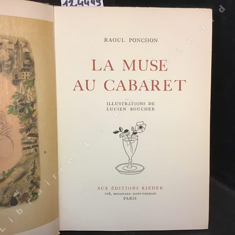 Exemplaire revêtue d'une délicate reliure du temps. Un des exemplaires numérotés du tirage sur vélin blanc de cette ''édition recherchée''. (in Carteret). Il s'agrémente - ici en premier tirage - de compositions hors-texte et en couleurs de Lucien Boucher. ''L'oeuvre d'illustrateur de cet artiste particulièrement recherché des écrivains autant pour sa verve que pour sa fidélité à l'esprit des textes, est considérable''. (in Bénézit). ''Esprit sain et ingénu lorsqu'il ouvre les yeux sur le monde, il y constate une telle abondance de spectacles singuliers où se côtoient le fantastique et le comique, qu'il n'a qu'un seul souci : les exprimer''. (in 5.000 dessinateurs de presse). ''Plus célèbre des recueils de Raoul Ponchon. Ce fantaisiste avant l'école fantaisiste, ce poète-biberon à la manière de Saint-Amant, joyeux, bachique, prêt à la satire, rassembla le meilleur de son oeuvre dans La Muse au cabaret. Sans nul doute, voici le recueil le plus important consacré au vin, aux cabarets et aux ripailles''. (in Oberlé). Carteret V, Le Trésor du bibliophile / Illustrés modernes, p. 159 - Oberlé, Une bibliothèque bachique (pour l'originale de 1920 chez Fasquelle) - Bénézit II, Dictionnaire des peintres, p. 212 - Saint-Martin, 5.000 dessinateurs de presse, p. 98. Dos légèrement passé présentant en outre quelques altérations superficielles. Du reste, très belle condition.
