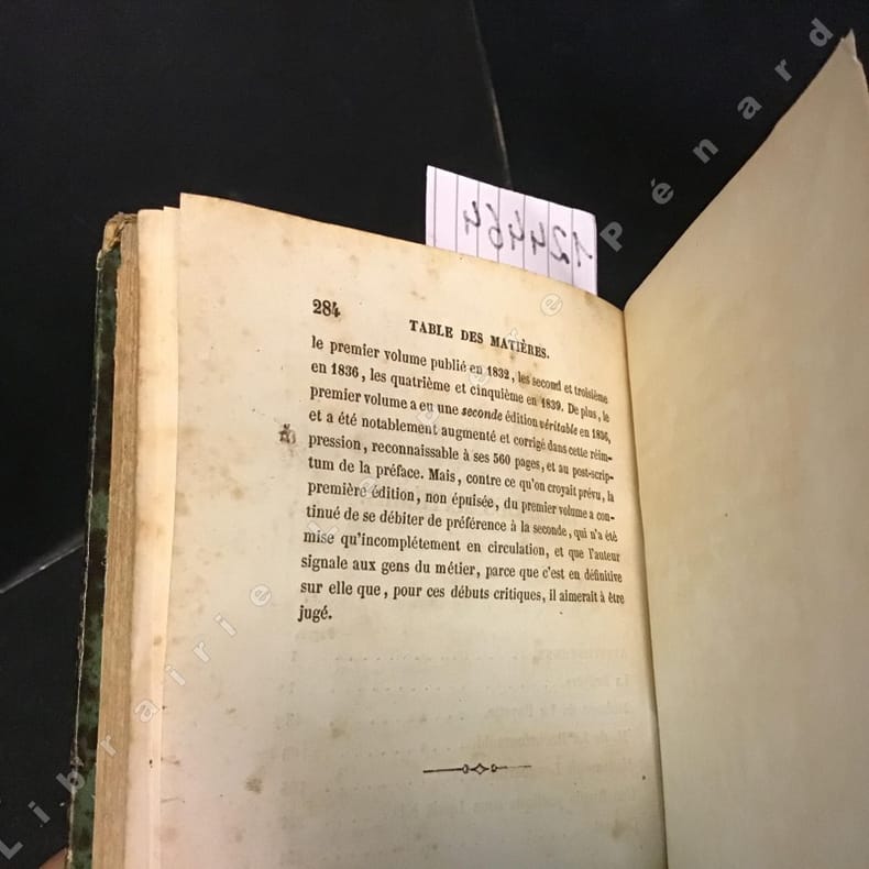 1842 Imprimerie de H. Fournier et Cie, Paris - 1842 - Un volume in-8 (12x18cm), reliure demi cuir, dos lisse avec auteur et filets horizontaux en doré - 282 pages + Table - Edition originale avec envoi (autographe) de Sainte-Beuve sur la troisième page de garde