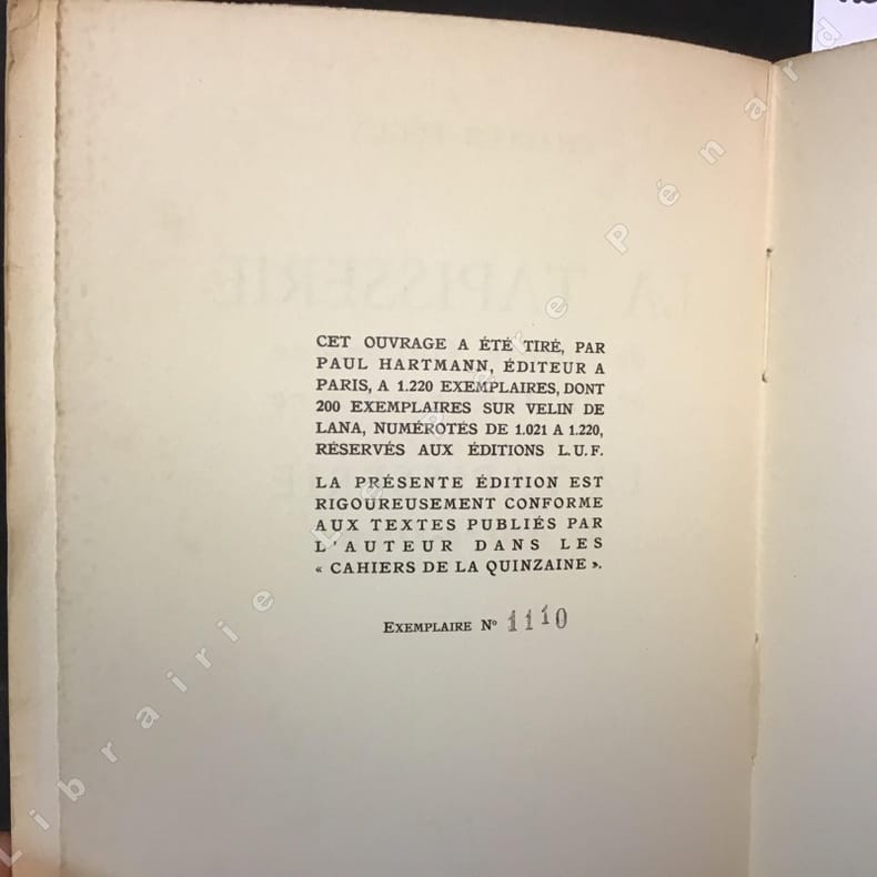 Tirage limité et numéroté sur vélin de Lana. Cette édition est rigoureusement conforme aux textes publiés par l'auteur dans les " Cahiers de la Quinzaine ". Belle édition. Photos sur demande.