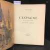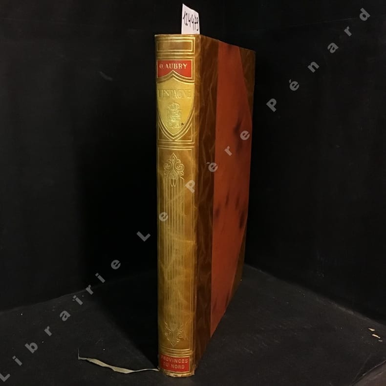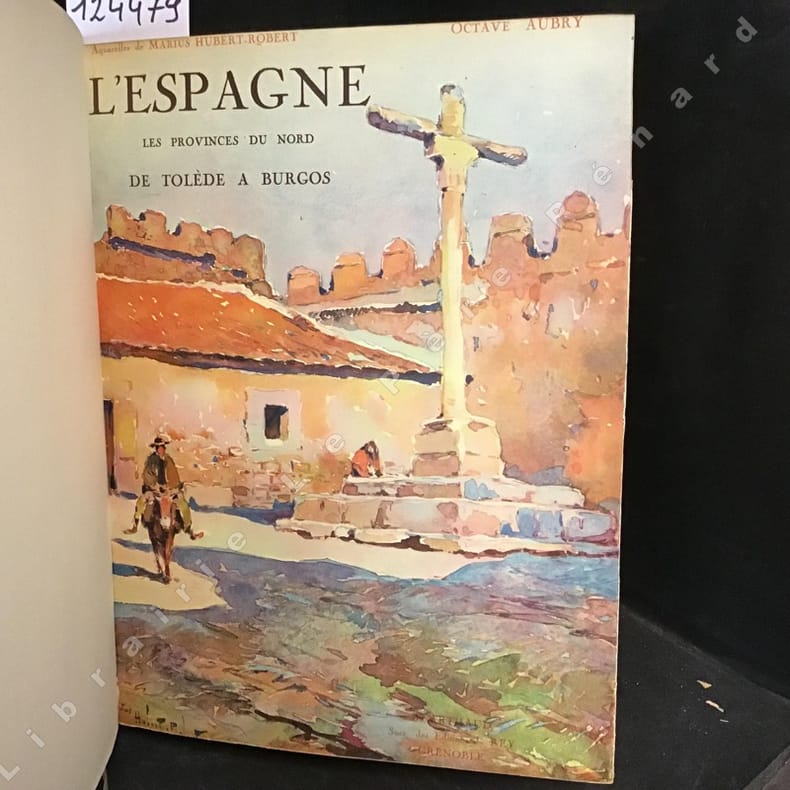 Grenoble Arthaud 1929 -in-4 demi-basane à coins 2 volumes, reliure demi-basane marron grand in-quarto à coins Editeur (half binding sheepskin in-4 with corners) (32,8 x 25,8 cm), Reliure d'Epoque, dos à nerfs (spine without raised band), décoration or (gilt decoration) à filets or et à froid (gilt and blind stamping lines), titre et auteurs frappés or, entre-nerfs à fleuron or, filet à froid de part et d'autre des nerfs, filet or en tête et en pied, plats décorés à froid, mors et coins ornés d'un filet à froid, papier fantaisie jaune, marron, violet et or aux plats, dos et couverture ornée d'une aquarelle en couleurs par Marius Hubert-Robert conservée, orné d'une aquarelle couleur en frontispice et 13 aquarelles hors-texte en couleurs par Marius Hubert-Robert + de trés nombreuses photographies en héliogravures in et hors-texte à la sépia (Photographies de Bertault-Foussemagne et Boissonnas) pour "LES PROVINCES DU NORD DE TOLEDE A BURGOS" + une aquarelle couleur en frontispice et 12 aquarelles hors-texte en couleurs par Marius Hubert-Robert + de trés nombreuses photographies en héliogravures in et hors-texte à la sépia (Photographies de Bertault-Foussemagne et Boissonnas) pour "LES PROVINCES DU SUD DE SEVILLE A CORDOUE", 195-160 pages, 1929 Grenoble Arthaud Editeur,
